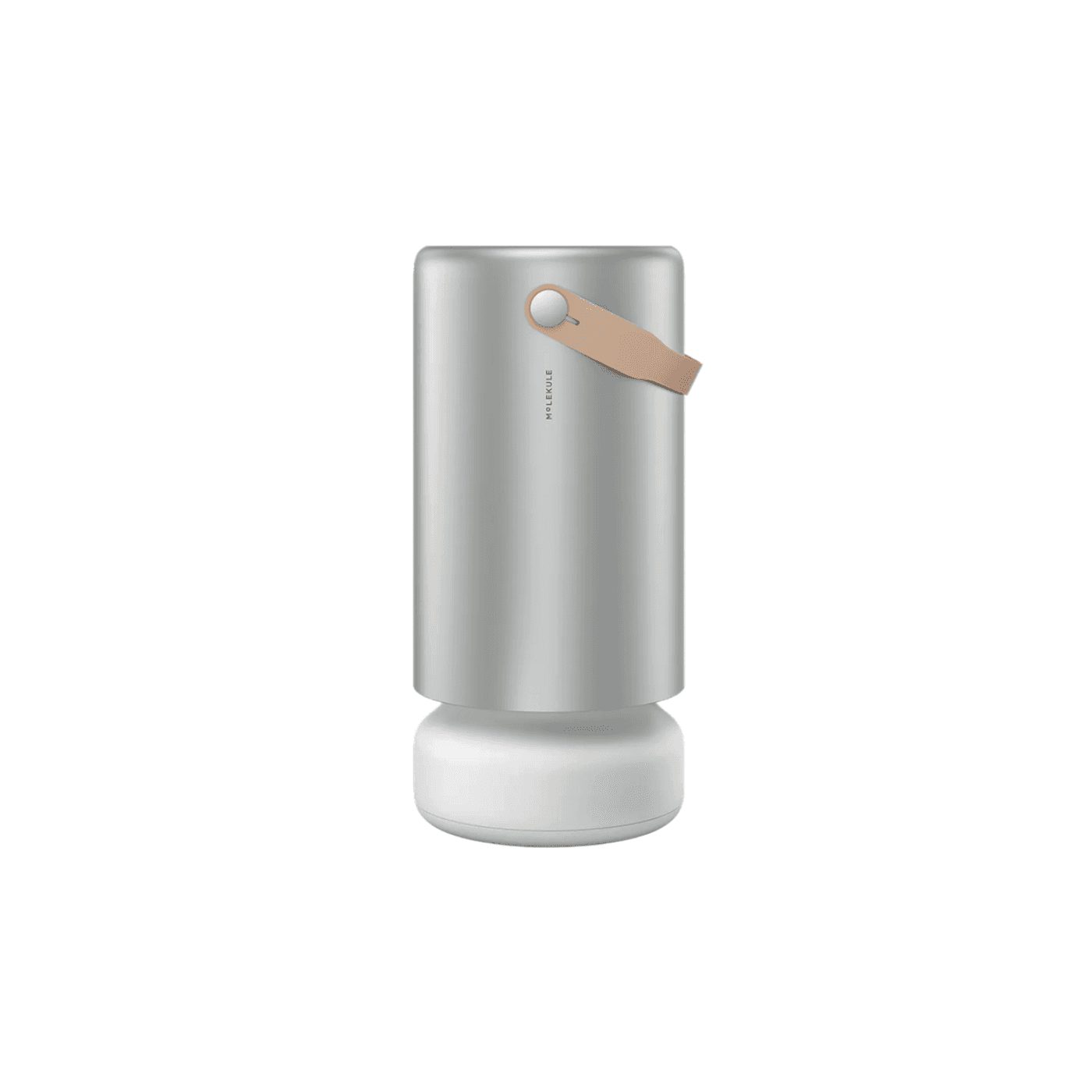 The Air Pro is housed in a cylindrical brushed aluminum body with a top carry handle and clean, uninterrupted lines. A soft light band around the base communicates mode and air quality through color, eliminating the need for a screen. Operation is nearly silent. The Air Pro sits in the minimalist items category not just aesthetically but functionally. It runs, it monitors, it adjusts. It does not ask for attention.