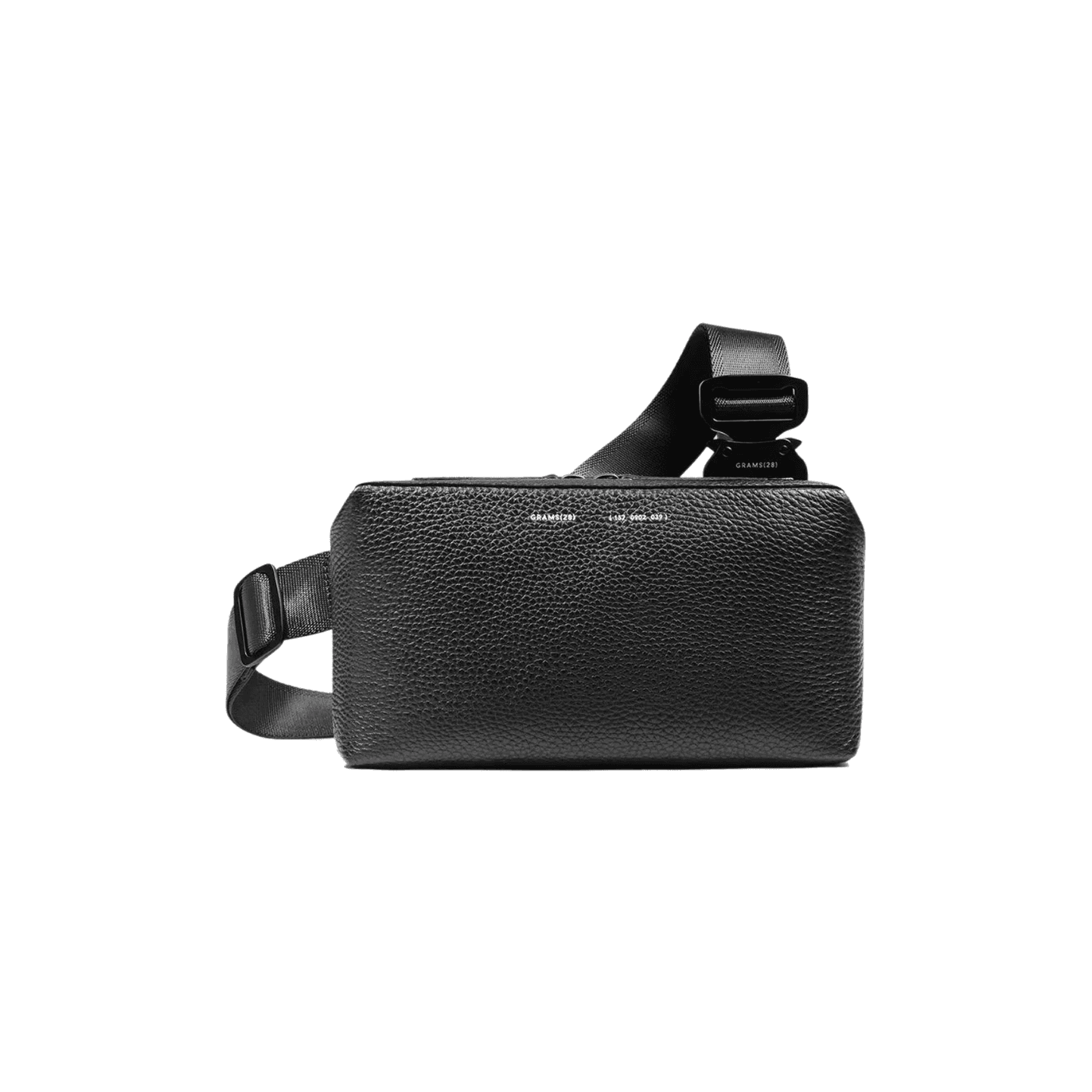 Grams28 designed the 157 Essentials Sling with a rigid silhouette that holds its shape whether it's full or empty. Double galvanic plated zippers glide without catching and add a quiet industrial weight to the hardware. The dual-zip main compartment is ambidextrous, accessible from either side, which matters more than it sounds when you're carrying the bag at different heights throughout the day. Inside, the organization handles a phone, wallet, keys, and a compact camera, with room for a flat water bottle or a small notebook. It fits a Fujifilm X100, a Ricoh GR III, or a Nintendo Switch without strain.