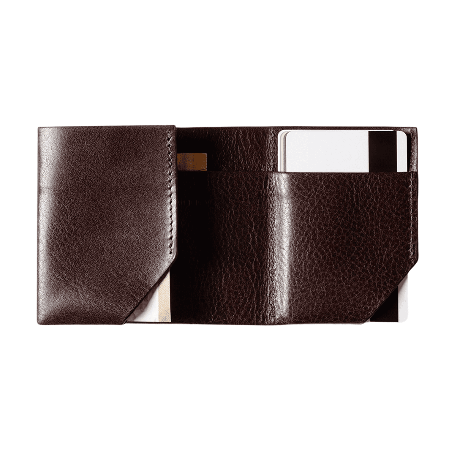 The Cash Card Wallet shares material sourcing with the Billfolder but adjusts the layout for different carry preferences. Six card slots spread across the interior, three per side. The bill section sits horizontally rather than vertically, creating a squarer profile that some find more comfortable in front pockets. The same vegetable-tanned Italian leather and hand-stitched construction apply.