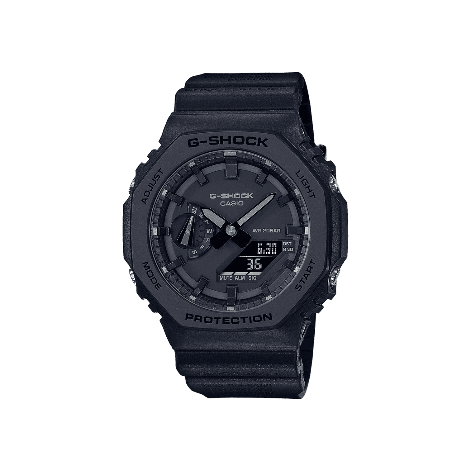 The GA-2100 proves restraint belongs in the G-Shock lineup. Its octagonal case measures 45mm but wears smaller due to thin profile and integrated strap design. The all-black "CasiOak" colorway sparked initial attention, but the watch succeeds through proportion rather than nickname.