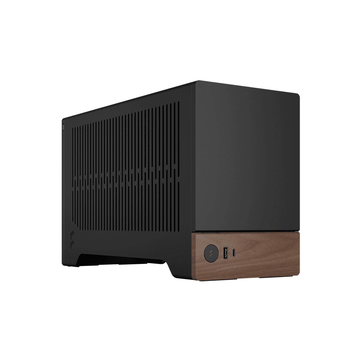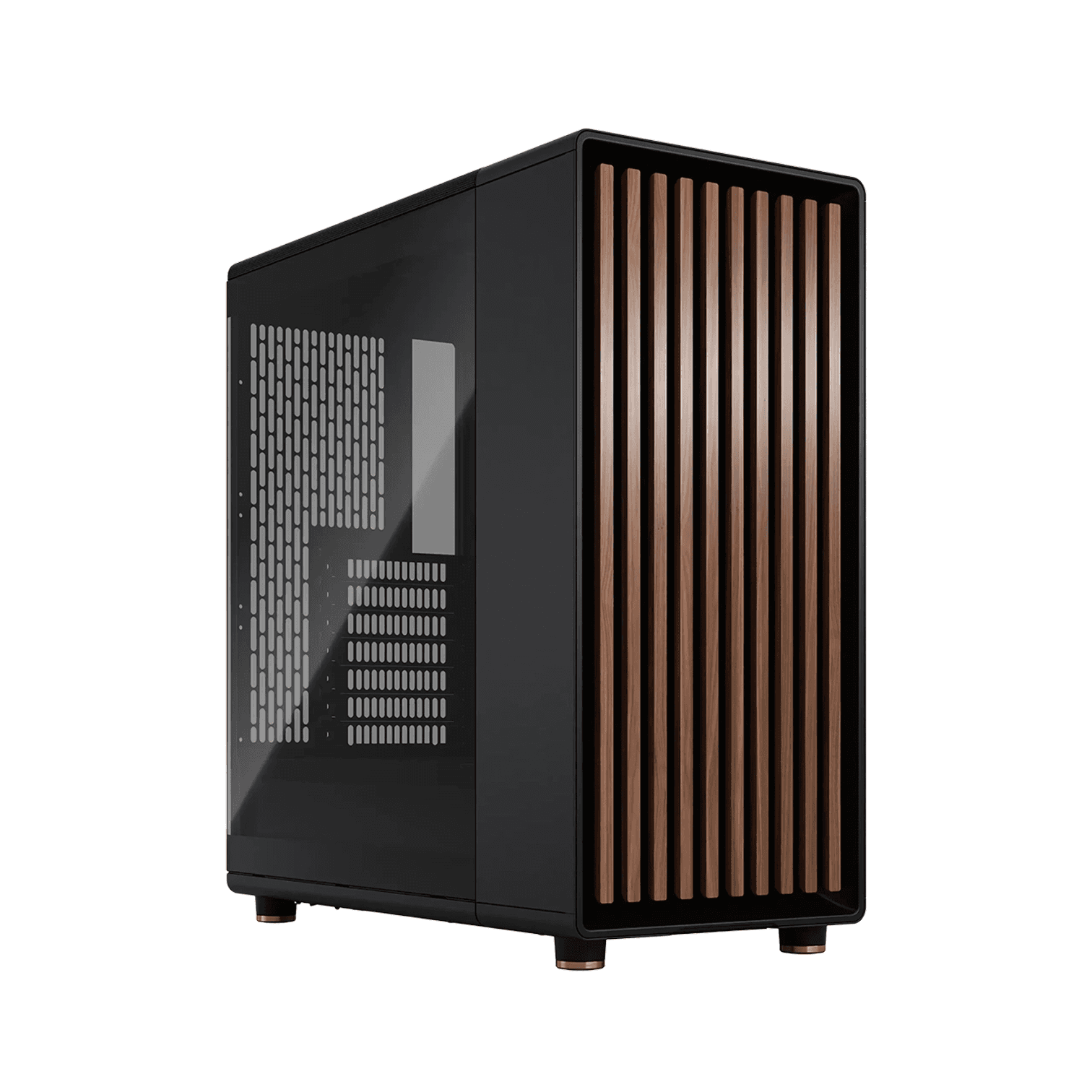 The Fractal North asks a question most PC cases ignore: what if the tower looked intentional from across the room? Its defining feature is a removable front panel crafted from walnut or oak veneer, depending on preference. The wood grain is real, not printed. Beneath this sits a full mesh front for unrestricted airflow, a reminder that thermal performance need not be sacrificed for visual coherence.